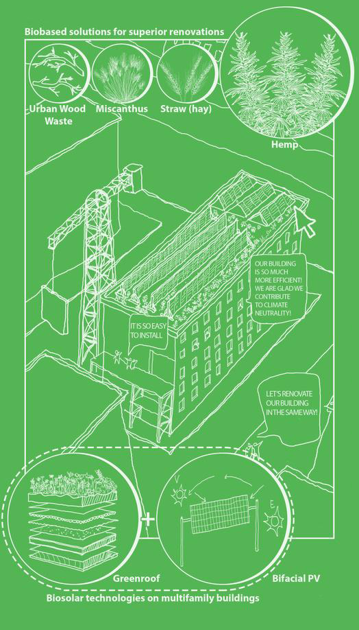 Reducere a emisiilor de gaze cu efect de seră și a consumului de energie prin renovare bio-based și RES integrat.